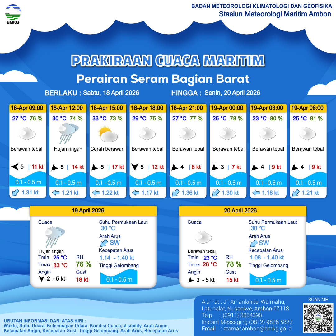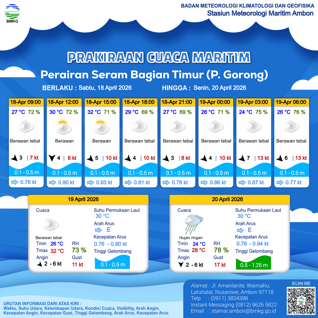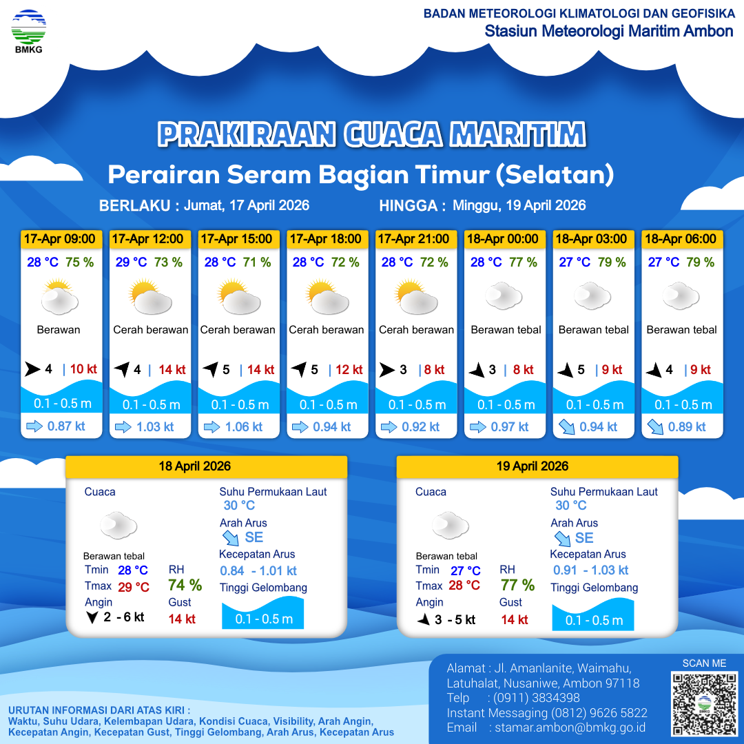 | 8 | Perairan Seram Bagian Timur (Selatan) | LIHAT INFOGRAFIS | 17-04-2026 13:41:48 WIT |