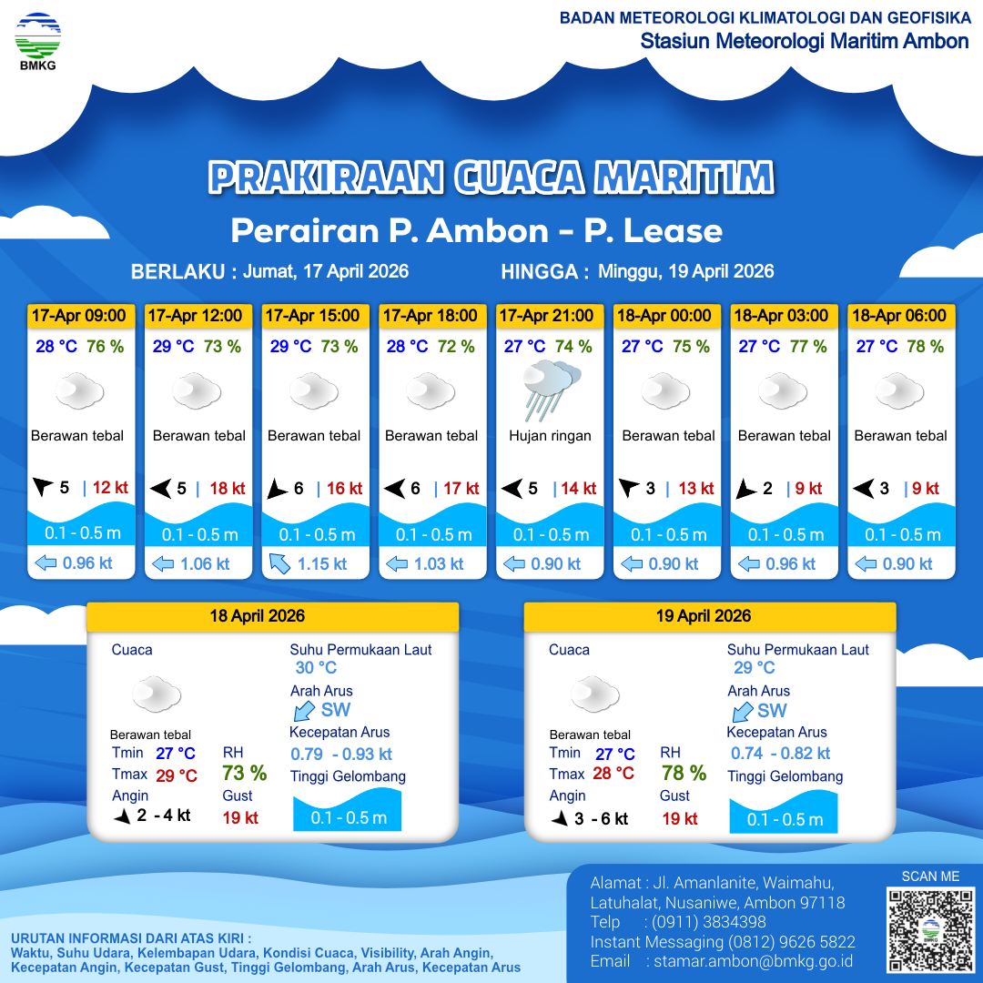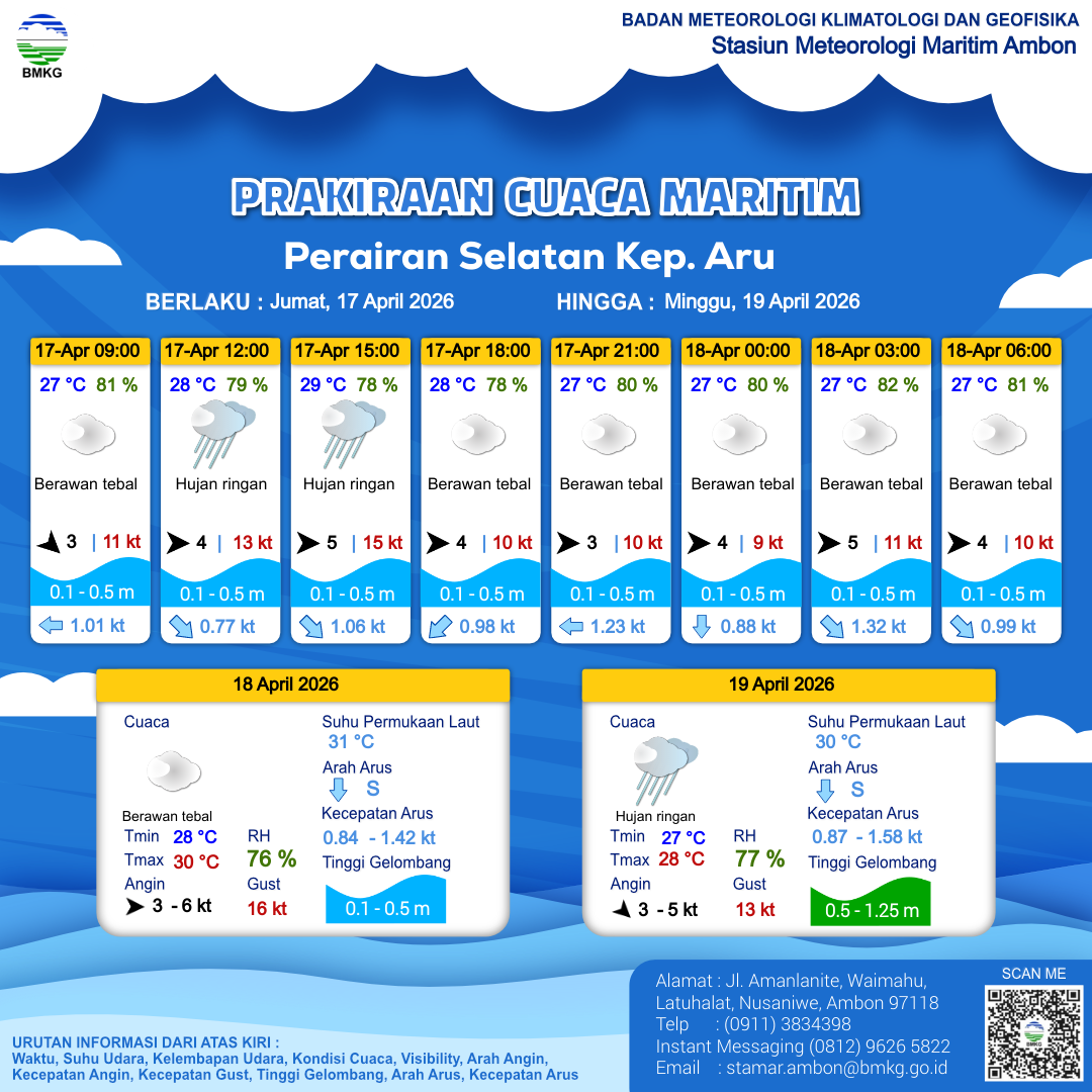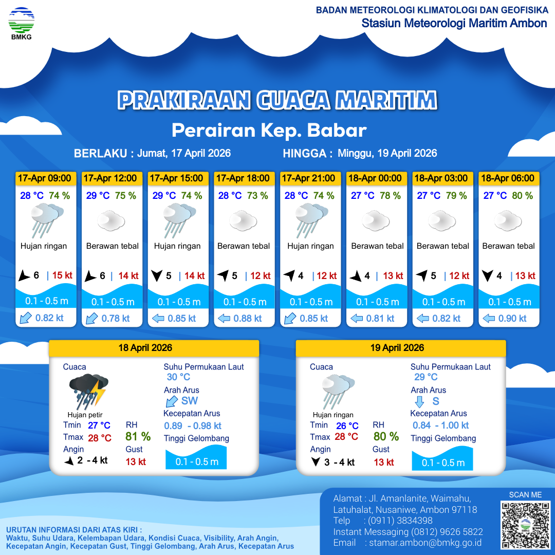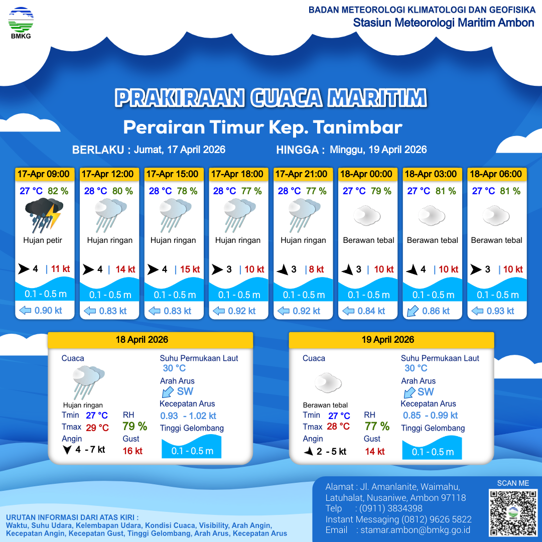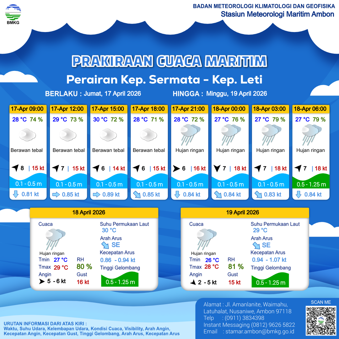 | 17 | Perairan Kep. Sermata - Kep. Leti | LIHAT INFOGRAFIS | 17-04-2026 13:41:48 WIT |